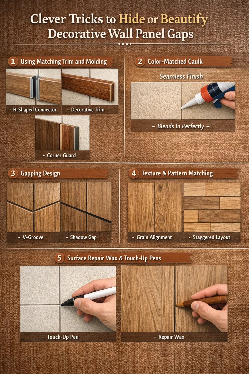 При установке декоративные стеновые панели Неправильно обработанные зазоры между панелями могут существенно повлиять на общую эстетику. Чтобы стена выглядела как единое целое или чтобы промежутки выглядели естественно и красиво, вы можете попробовать следующие практические методы: