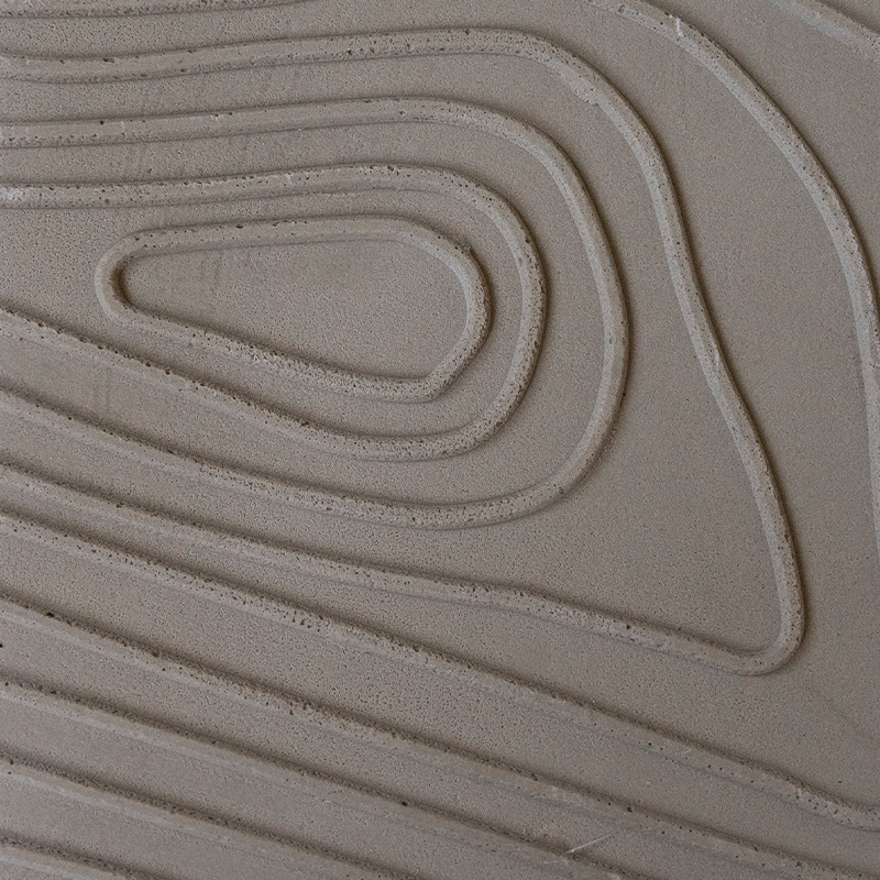 Поверхность восстанавливает зернистость, слоистость и матовую текстуру натурального камня, ослабляет следы промышленной обработки, сохраняет естественное эстетическое выражение сосуществования шероховатости и деликатности.