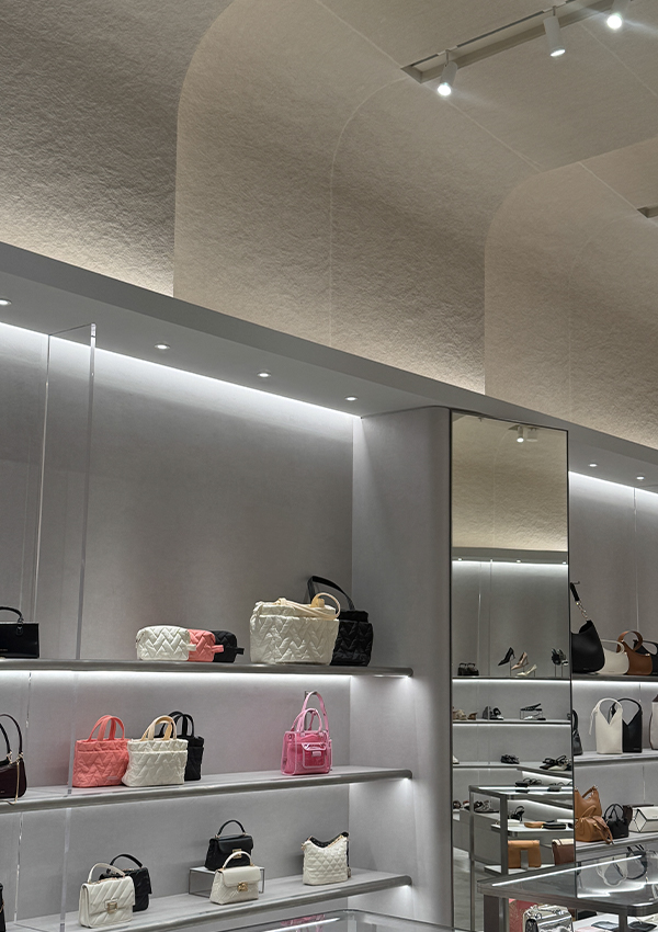 Поверхность воспроизводит пятнистые частицы и холодные тона натурального гранита, сохраняя первоначальный вид, а лежащая под ней гибкая подложка придает ей характеристики сгибаемости и складчатости, близкие к естественной эстетике, но включающие в себя современный технический язык.